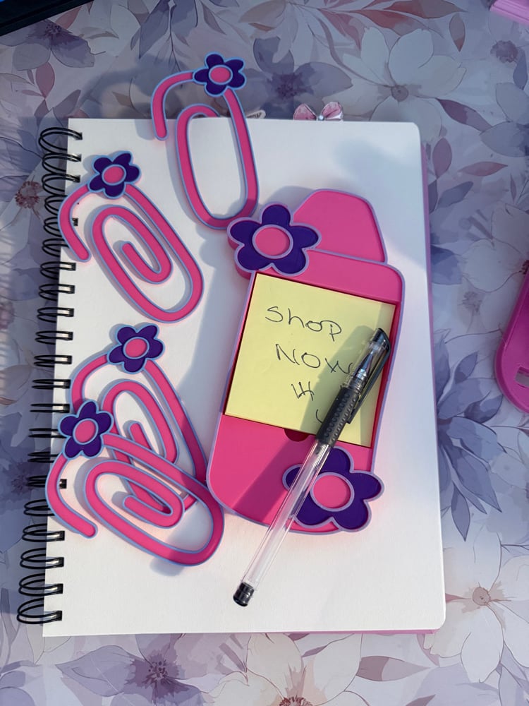 5 piece desk set. Made of harden plastic. Set included (4) Jumbo paper clips (1) Post-it note pad holder.