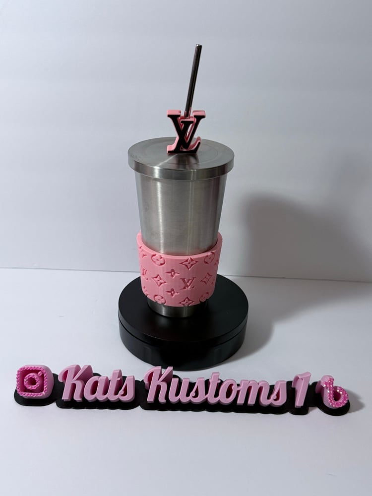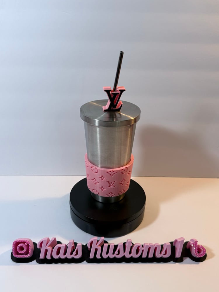Straw Topper & Cup Sleeve. (Tumbler not included). Designer inspired top & sleeves. 3D printed and made of harden plastic