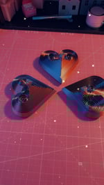 Heart shaped fidget spinner with several points of motion made of hearten PLA plastic with a two toned silk glow it can be raised from both sides